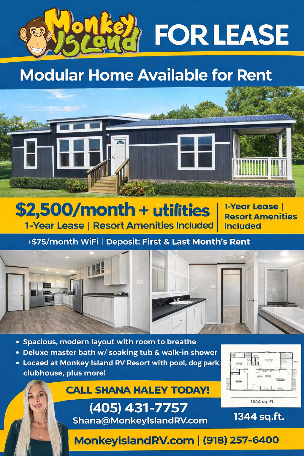 Discover modern modular homes available for rent at Monkey Island RV Resort — where everyday living meets resort-style amenities. Our rental homes offer spacious layouts, modern finishes, and access to everything the resort has to offer, all in one unforgettable Grand Lake location.